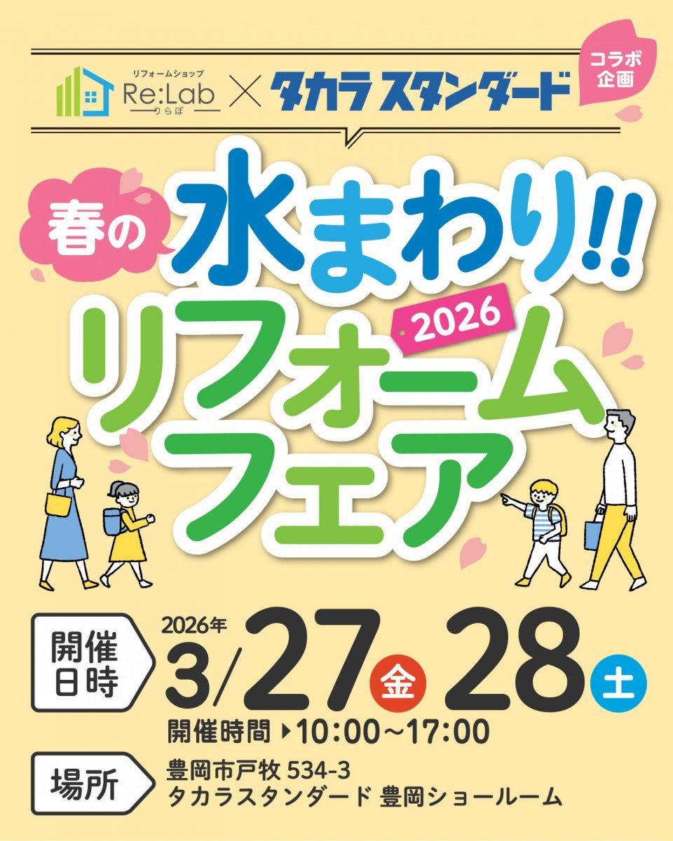 この度、タカラスタンダード様とのコラボで「春のみずまわりリフォームフェア」を開催します!